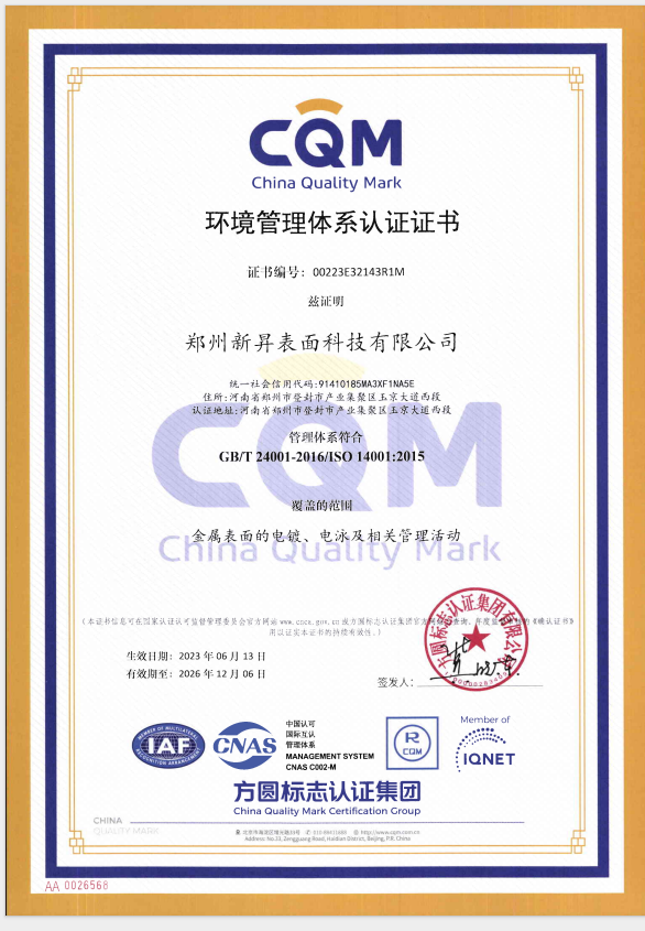 2023年6月取得ISO 14001:2015環(huán)境管理體系認(rèn)證證書