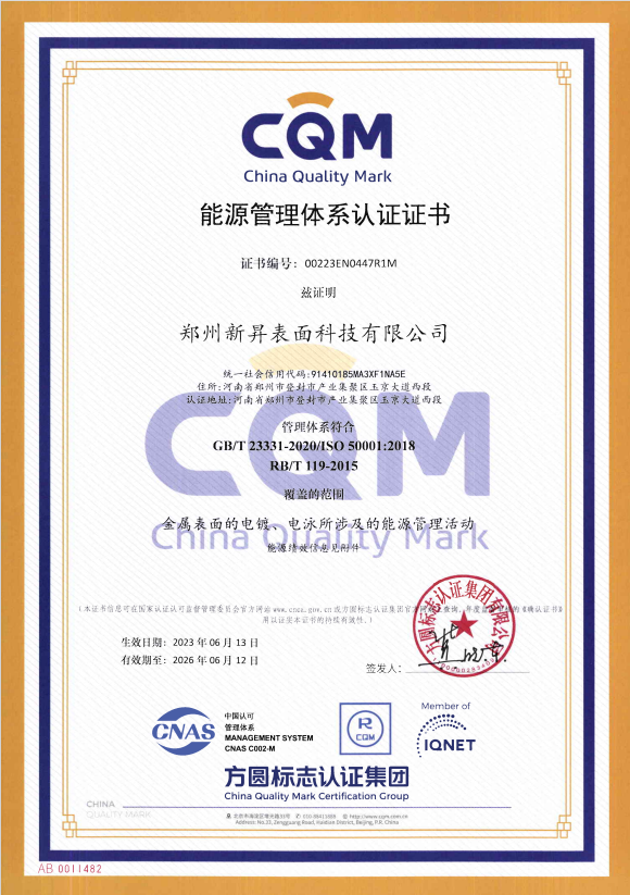 50001:2018能源管理體系認(rèn)證證書