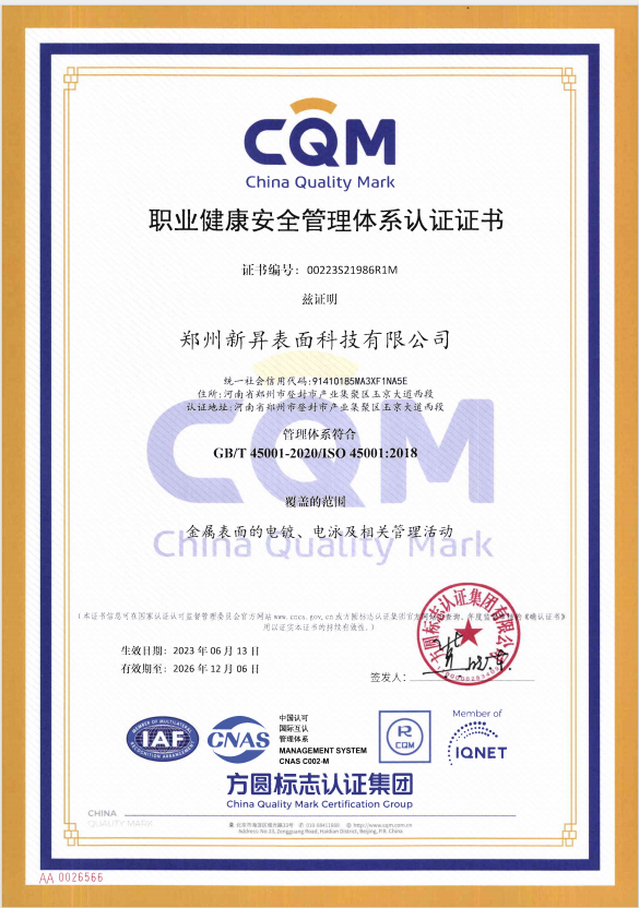 ISO 45001:2018職業(yè)健康安全管理體系認(rèn)證證書